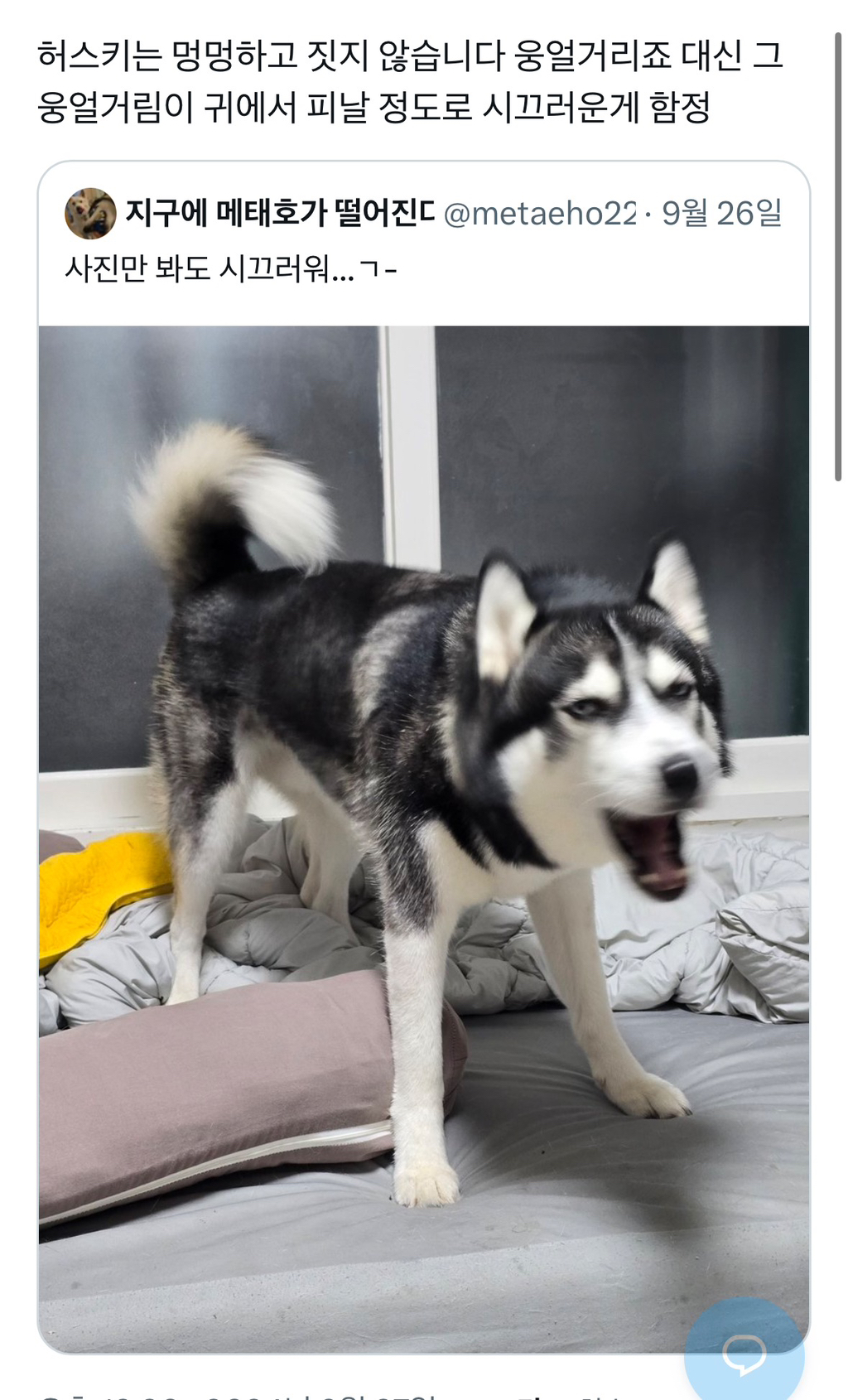 허스키는 멍멍 짖지 않습니다